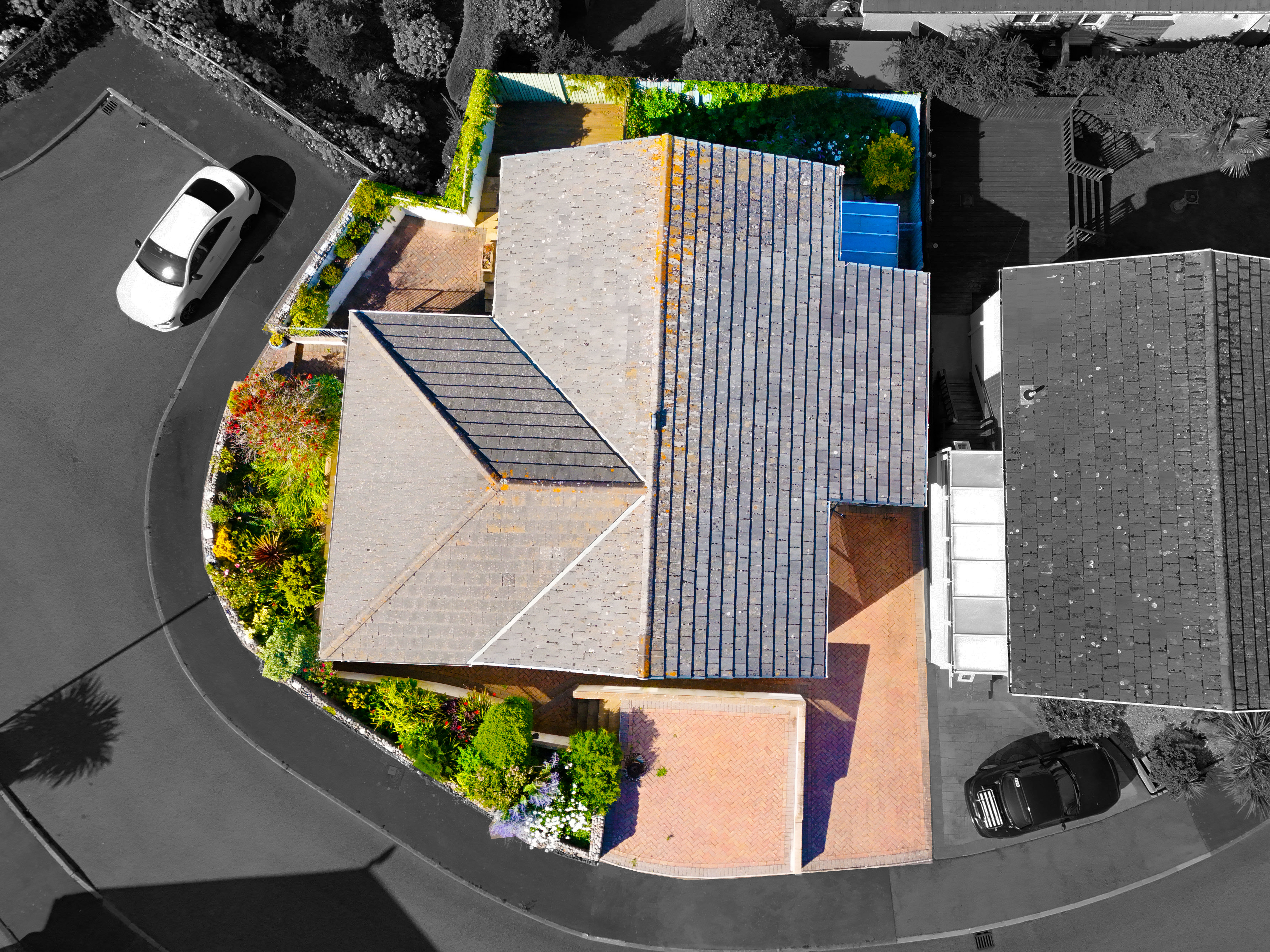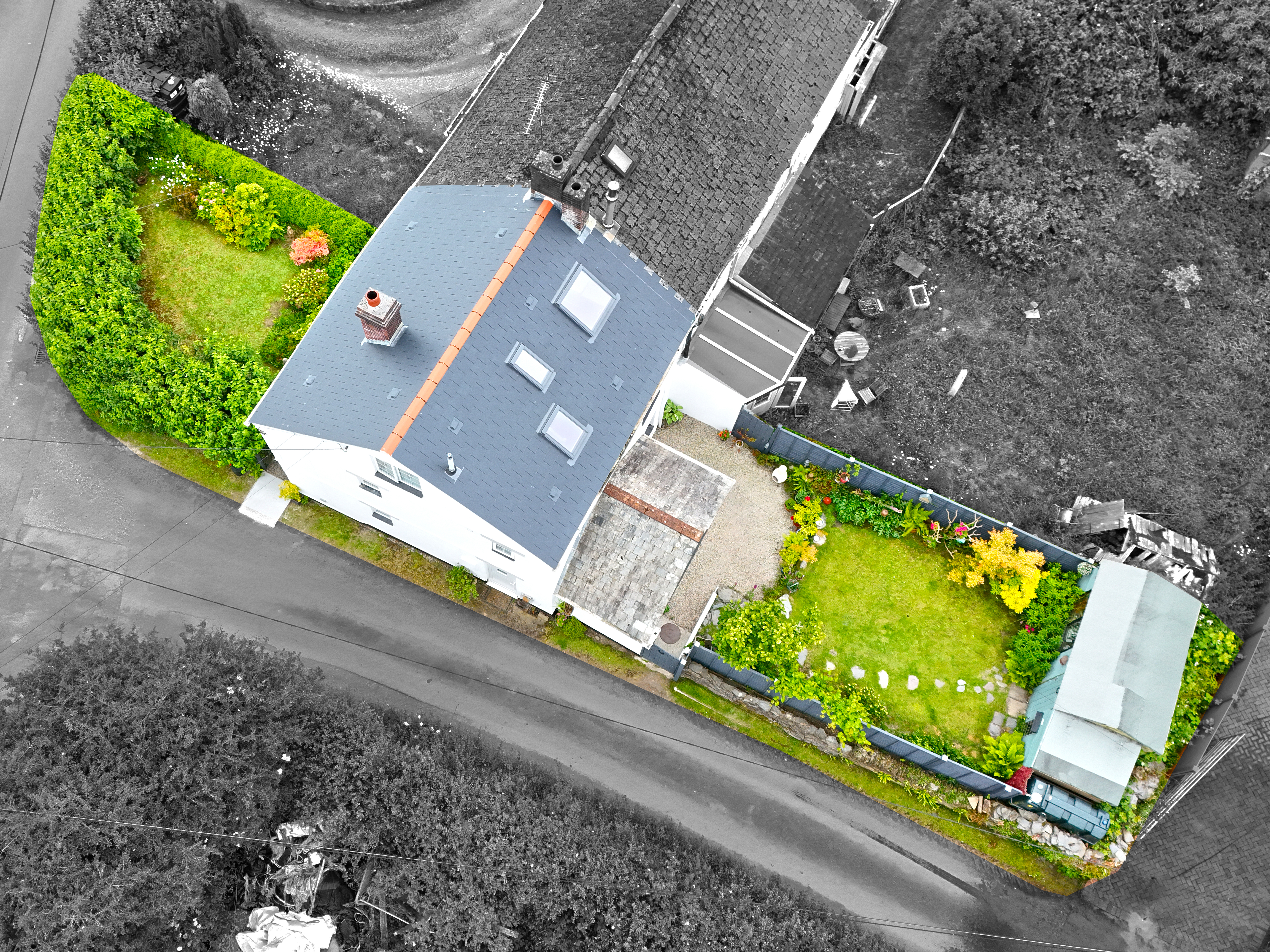 The view from above using our aerial filming and photography gives an elevated vista of a property and land boarders that can really help a listing stand out from the crowd. Drone photography can quickly highlight an appealing location or showcase the grounds and boarder outlines of a property. With enhanced editing we can highlight a property and its borders in colour while everything else around it is in black and white giving potential clients a better understanding of what is actually available.